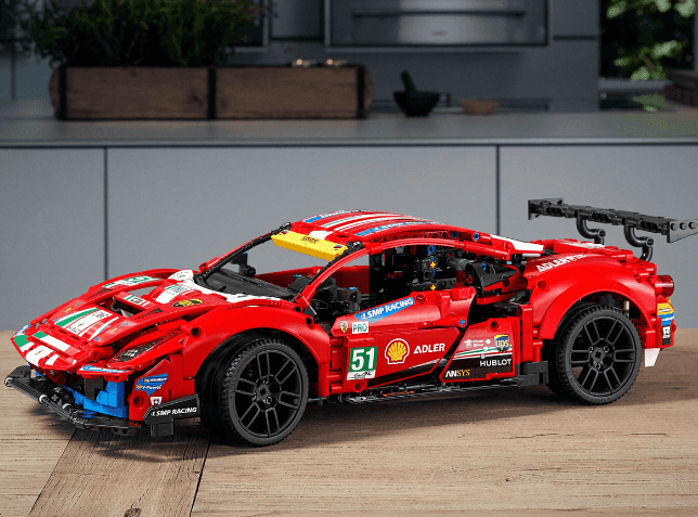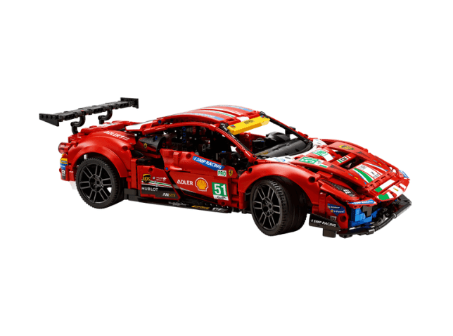 Zestaw odtwarza kultowy samochód wyścigowy Ferrari 488 GTE w wersji „AF Corse #51”, inspirowany realnymi zmaganiami zespołu w wyścigach wytrzymałościowych. Model zachwyca autentycznymi detalami takimi jak: przednie i tylne zawieszenie, silnik V8 z ruchomymi tłokami, działająca kierownica, otwierane drzwi i maska, które dają dostęp do wnętrza i mechanizmów.