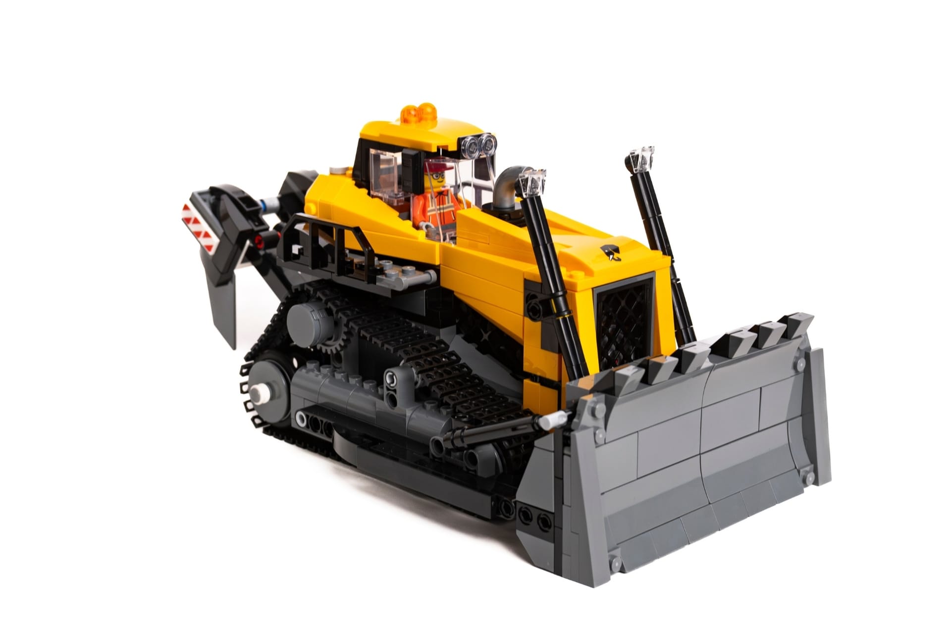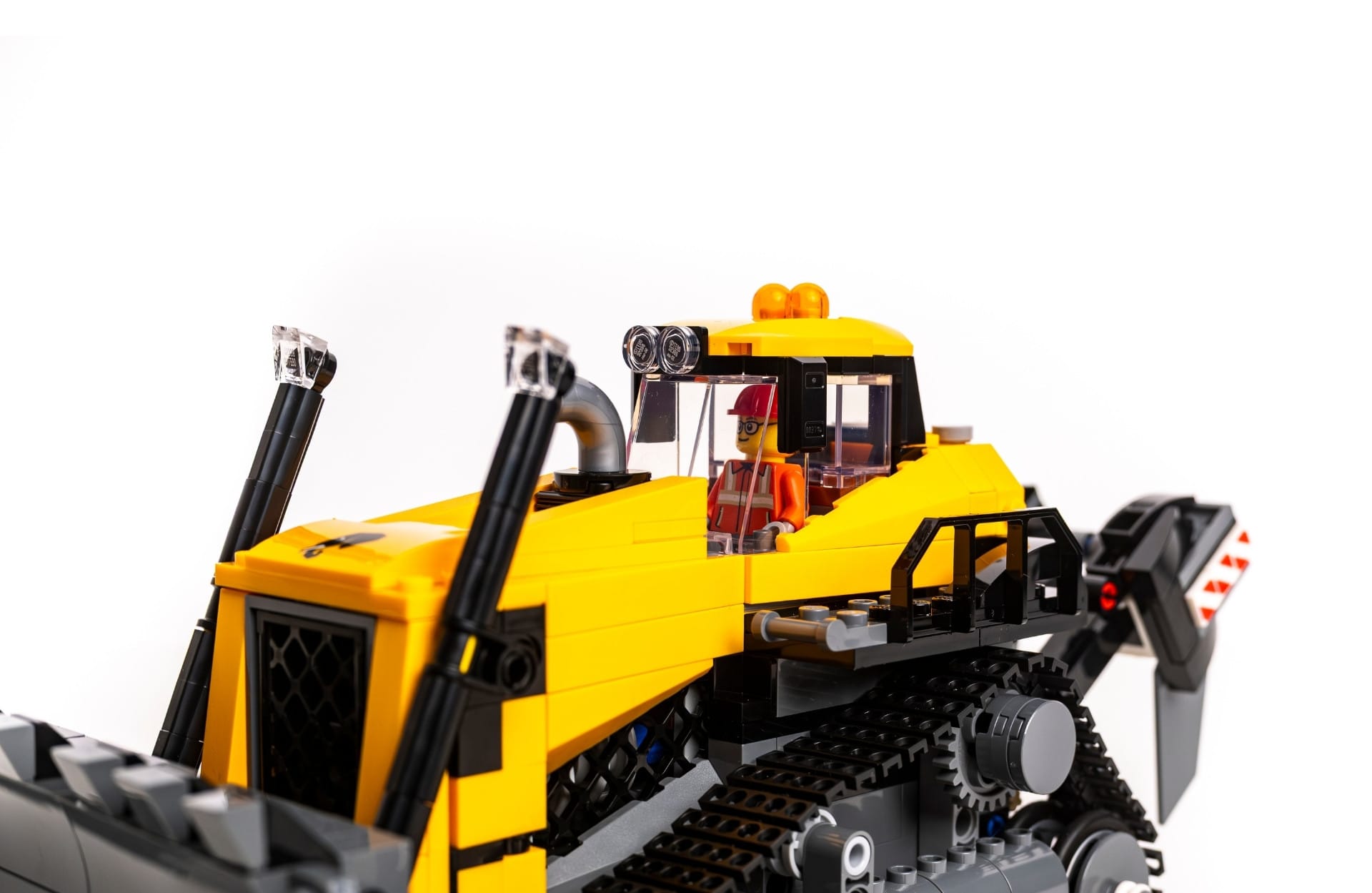 Ten imponujący buldożer został zaprojektowany z myślą o jak najbardziej realistycznych wrażeniach – od szczegółowego silnika z widocznymi ruchomymi tłokami, przez podnoszony lemiesz na przedzie, aż po tylny zrywak z dwoma zębami gotowymi do rozgarniania podłoża.